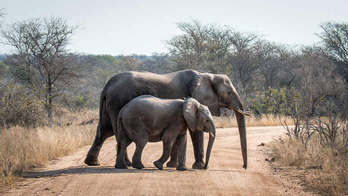 Wildlife, for example this mother elephant and her baby in Kruger Park