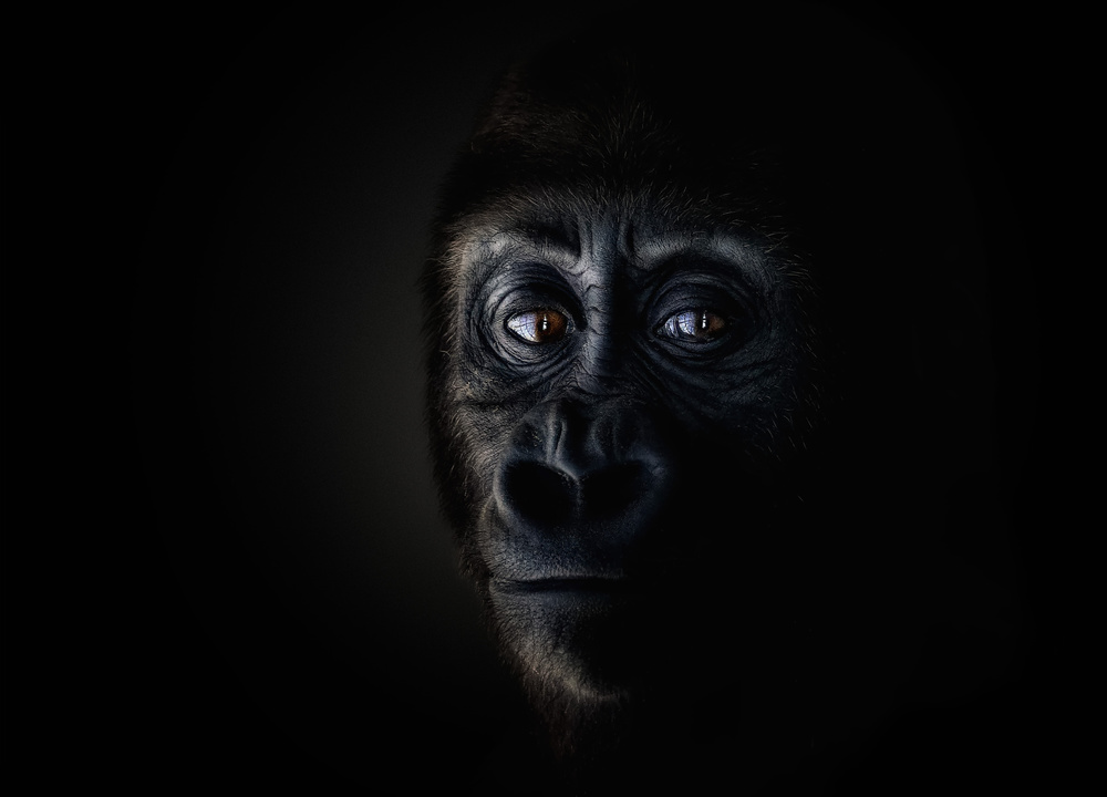 So I chose to make the portraits from a feasible (and safe) position and recreate the studio in the edition phase. I started experimenting, and I realized that in the end the result was better, because the animal behaved naturally when not forced to be in a studio. Studio work often frightens or stresses the animal, and the result is a portrait of a harassed creature. So what was initially a constraint ended up becoming an advantage. The animal is often unaware that he's being photographed, or if it is, eye contact is made, but each one from his own safe space. And I often try to get that eye contact, because that is where your consciousness is best perceived and a fascinating interaction develops. I then came to the conclusion that it is not worth forcing the animal to pose in a photographic studio just to get a dark background. If this can be done in post-production, there is no need to disturb it.