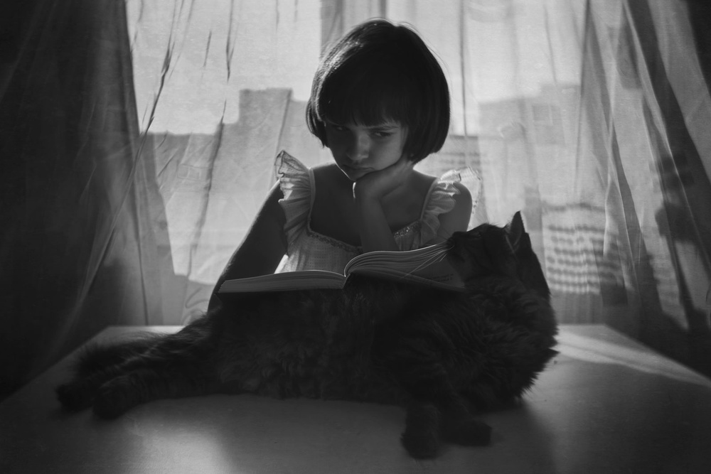 'A girl and her cat'