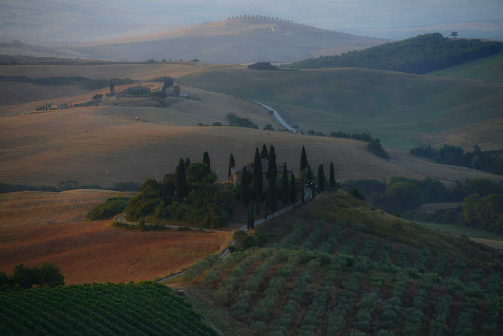 Some years ago I was travelling around in Tuscany, Italy. I knew there would be a lot of extraordinary photo opportunities, but I hadn’t planned exactly where to go. My husband and I drove out an early morning so I could find some good spots in the beautiful landscapes. I didn’t know where to end or begin, but when we suddenly passed some parked cars we thought perhaps here was a special spot. I recognized the view I had seen made by other photographers. It was kind of a breathtaking and exquisite experience to stand suddenly at the top of a hill looking at a marvellous landscape unrolling in the early morning light. I felt like a newbie and rather amateurish standing with my handheld camera among a large group of photographers looking quite professional. They didn’t pay any attention to me. I made a few captures and we continued our drive. Home again I was happy to see that the experience gave me this photo and it turned out to be very fine: