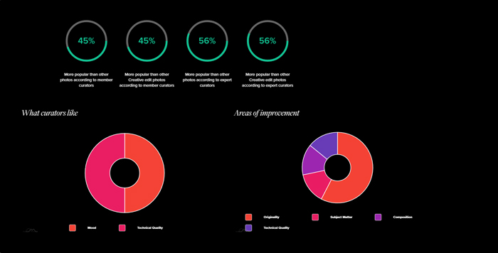 In the member and expert curation, you can give your opinion about the main improvements or most positive feedback on an image and that is represented by circles divided in several parts showing the results.