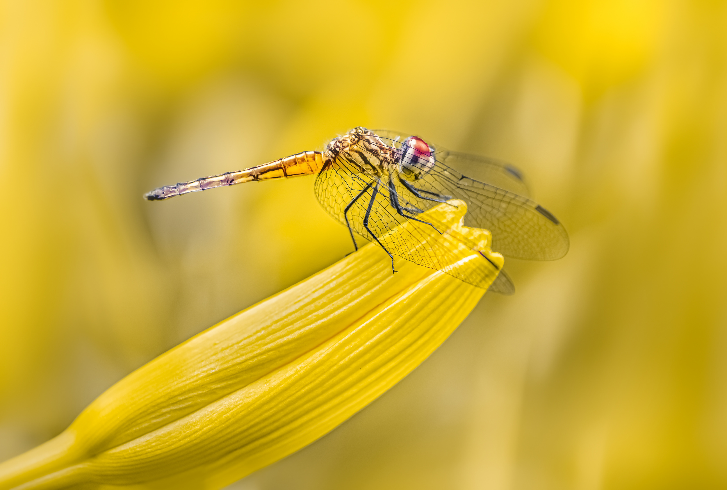 Most part of the photos I take are usually in or close to my backyard. Given the job, young kids, and an otherwise busy lifestyle, I find it hard to make time to explore farther locations for my creative pursuit. In fact, in some ways that's one of the reasons for my love of macro photography. I don’t have to wander far to be mesmerized by the beautiful creatures around us. I can find plenty in my own backyard, parts of which I tend to leave a little wild to attract wild insects and small birds and animals. Once I have located a subject and as much as they allow, my first goal is to get a clean background. Sometimes just by changing the angle and perspective slightly, the background can be improved significantly. I try to get the background to complement the subject and not distract from it. Sometimes I need to remove distracting elements from the foreground or background. I try to do it in the most gentle and respectful way so as not to hurt the vegetation in the vicinity. I then focus on the lighting to assess if natural light is dramatic enough or if I need to use diffused light from flash. Lastly, I try to assess the need for stacking or single shot depending on the size and complexity of the subject and if it is more still and cooperative or too jumpy or skittish. I mostly shoot in the mornings and evenings, especially since natural light isn’t too harsh at those hours and allows me to create a bit of drama in my images.