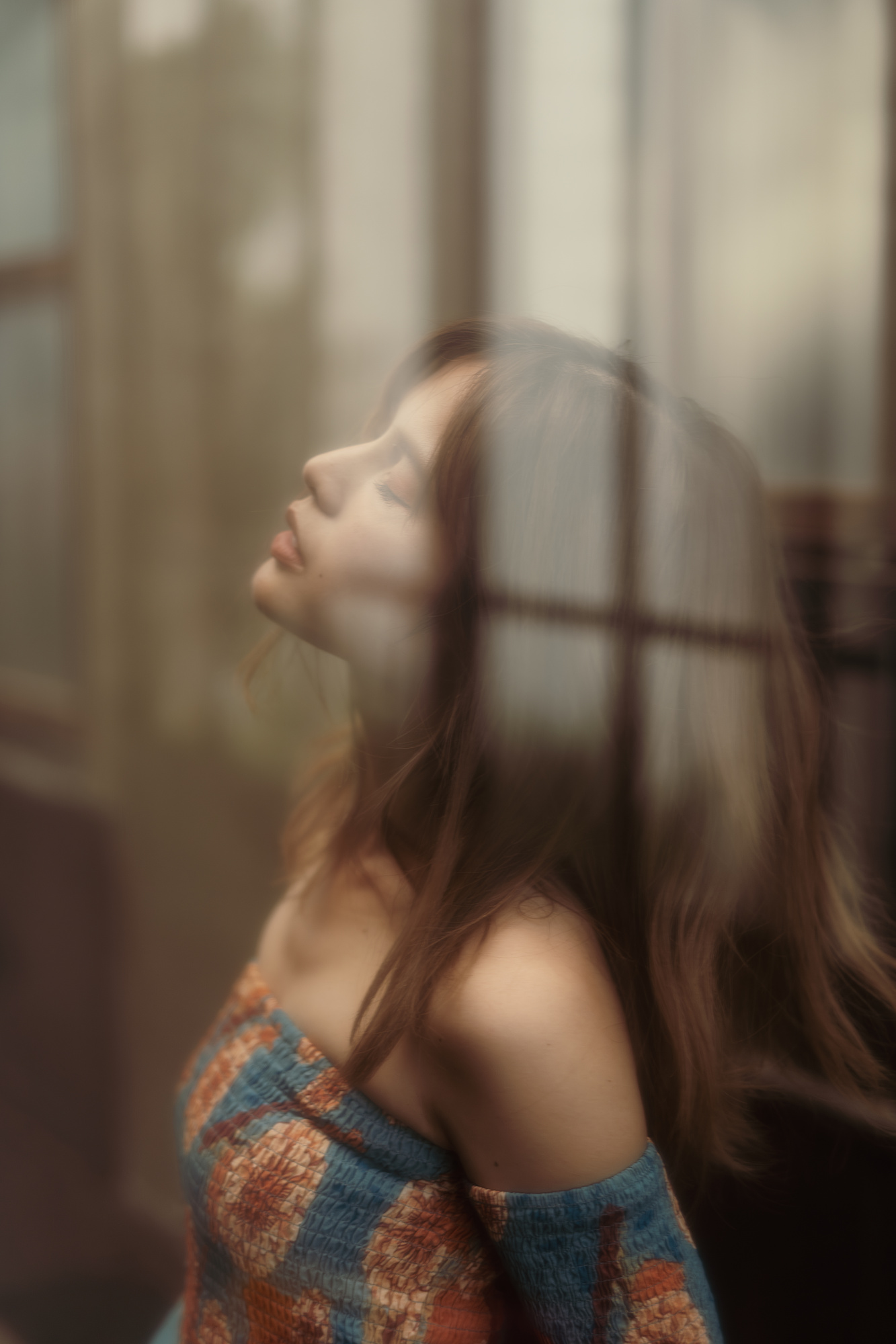 I commissioned the model for this work in a Japanese studio. It was shot on a white bed with no particular features. The white part draped diagonally over the model's head is a veil from the bed. I emphasize post-processing to complete the image, and this work is one of those pieces.