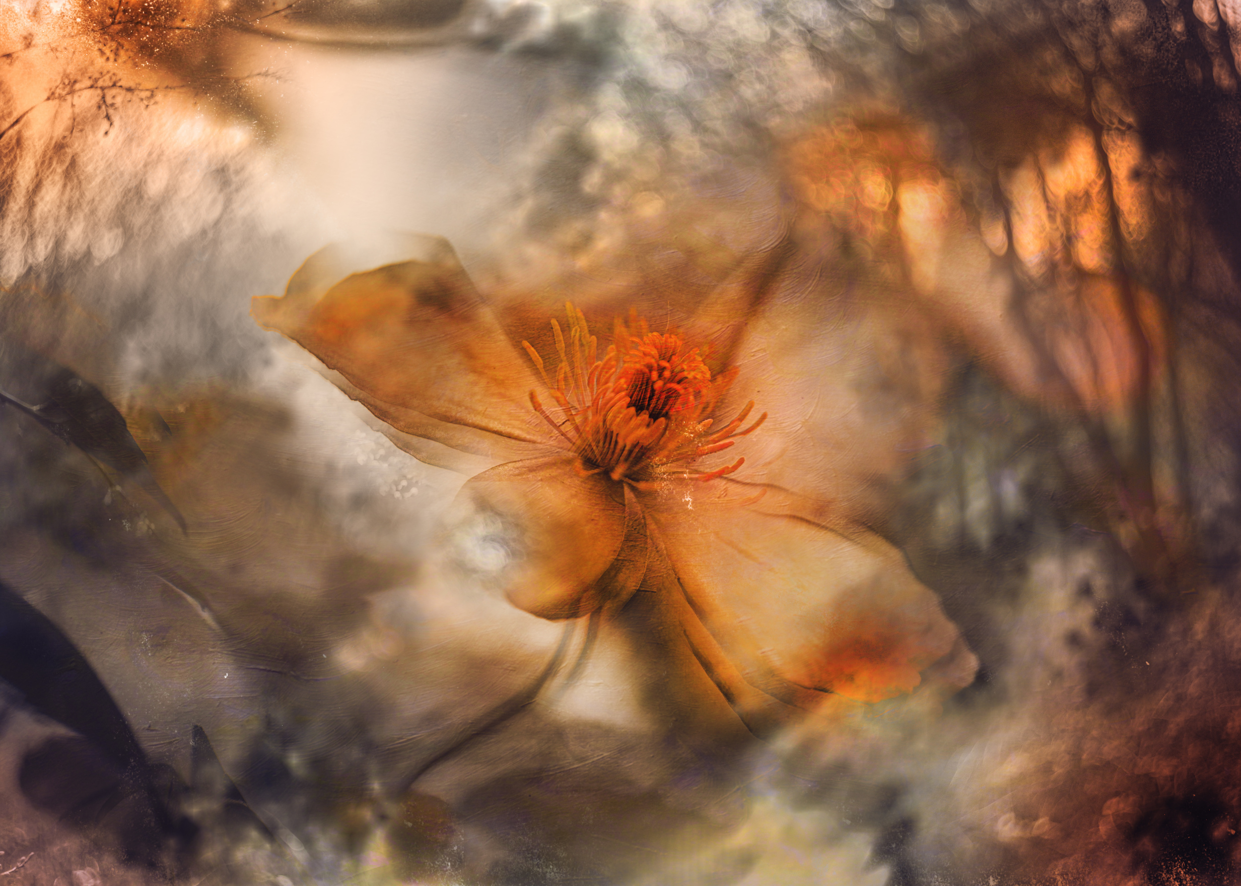 I captured 'January Mood' in the late morning when the sun was low, creating dim light - a common occurrence in England. I positioned myself to capture the sunlight at an optimal angle, using clouds as natural diffusers. For equipment, I used a Nikon D810 camera with a 105mm f/2.8 macro lens and the ground as a stabilizer. Settings were set to a shutter speed of 1/60s, aperture of f/5.6, and ISO 1000 due to the dark, gloomy day. Post-processing was done in Photoshop, focusing on enhancing colours, shapes, and textures to accentuate the plant’s uniqueness without overwhelming the image.