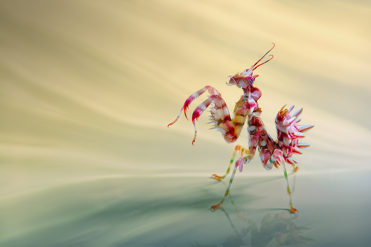 One of the difficulties with macro photography is lack of light – the camera is very close to the subject and the lens needs to be opened wide, resulting in a very small depth of field. Adding a source of light allows one to close up the lens to get a greater depth of field. There are countless ways of doing this, but merely putting a flash on top of the camera is not one of them, as there will be an enormous number of bright areas in the photo.