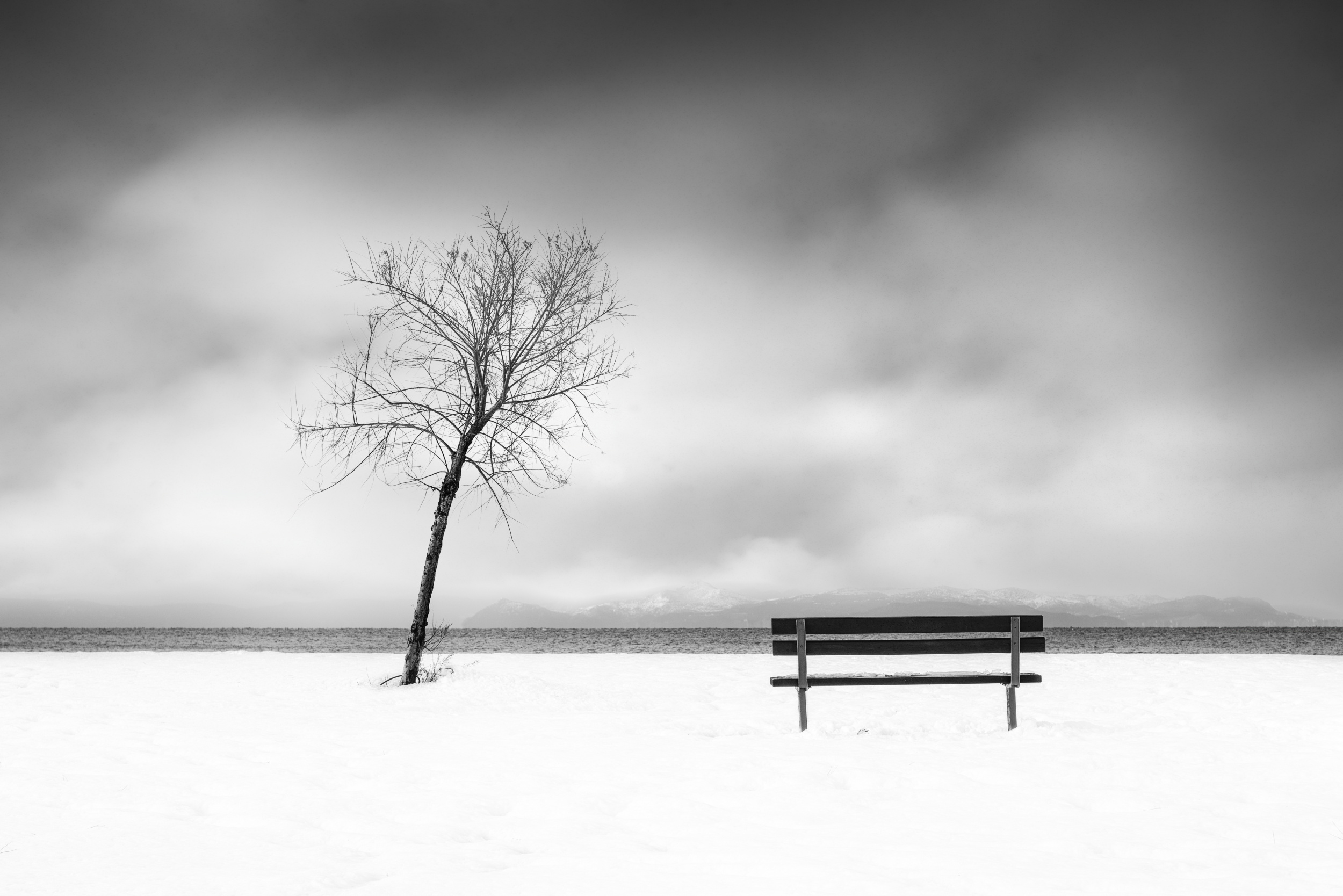 When the whole landscape is hidden under a blanket of snow, the composition looks more minimalist and interesting. Sometimes there is so much snow on the ground that the horizon is invisible, giving more freedom and the opportunity to create a composition to the photographer's taste.