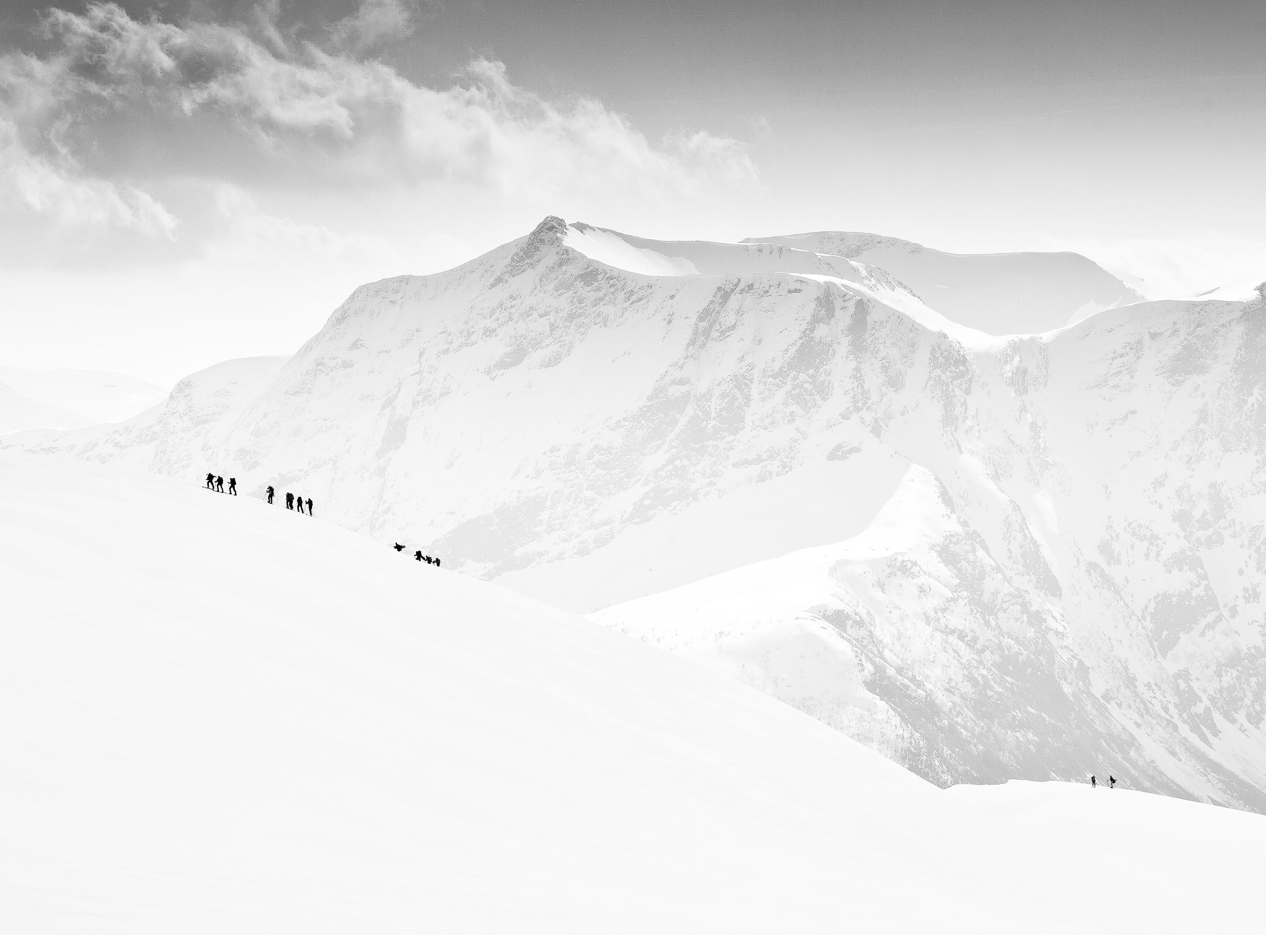 The image was processed in Adobe Camera Raw (ACR), Photoshop and four plugins: Nik Silver Efex Pro 2, Nik Color Efex Pro, Topaz DeNoise 5 and Topaz Detail 3.My goal in post-processing is to produce a dramatic black and white image.1) I first opened the RAW file in ACR and made basic adjustments, which always makes it much easier to process images in the later steps.Exposure: +15Brightness: +80Contrast: +25Lights: –15Shadows: –10This is the resulting image that I exported to Photoshop.
